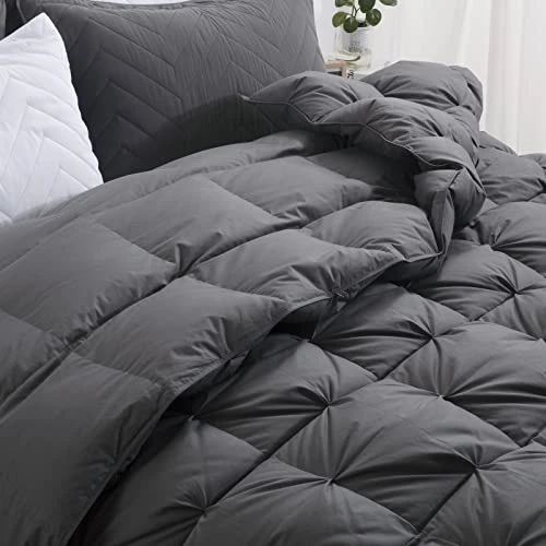 - 【Pinch Pleat Design】Baffle box pinch pleat design keeps the comforter more fluffy. Every box fluffy, full of premium feather and down, long-lasting cloud-like fluffiness, warmth and softness. The Baffle Box design keeps the fillings evenly,and beautiful pinch pleat also adds a decorative touch to the bedroom.
