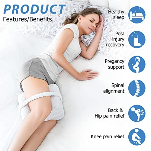 - Ergonomic natural groove design: The curved design of the knee wedge pillow allows for a better fit to the legs, providing an ideal sleeping position with the spine, hips and legs in alignment. The use of knee pillows for sleeping has been proven to help sciatica relief, improve blood circulation for side sleepers, reduce back pain, varicose veins, and relieve stress during pregnancy.