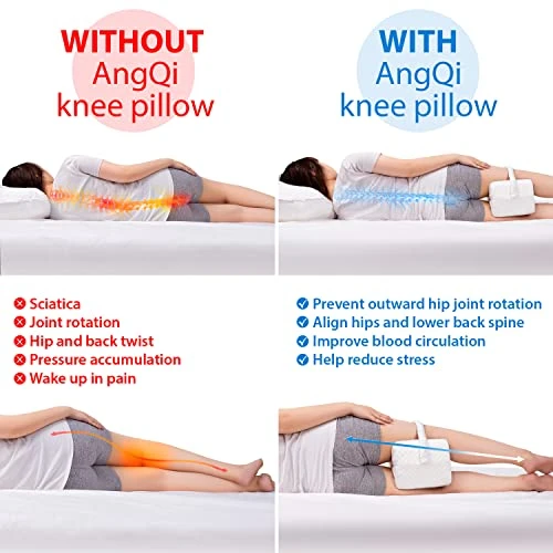 - Strap for stay-put leg pillow for side sleepers : Knee pillow only helps when it is kept in place. AngQi knee support pillow come with a strap that won’t move even if you toss and turn during the night, keeping your spine, hips aligned and in a comfortable sleeping position. No more hassle with readjusting the wedge pillow during sleep, allowing you to rest undisturbed!