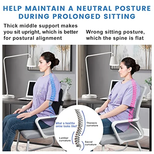 - Scientific Lower Back Support – anzhixiu orthopedic back pillow for office chair fits our lower back’s curve well. Thickened and widened the middle part, the lumbar pillow for chair’ s shape perfectly molds to the lower back curvature, which changes from forward curve to backward curve.