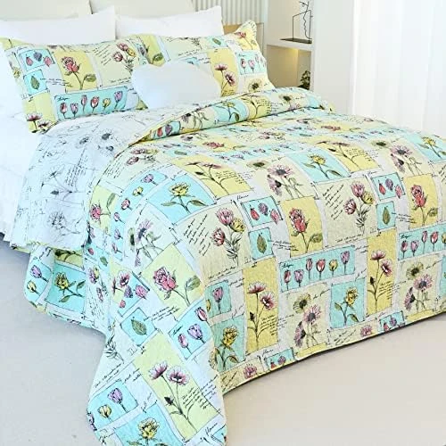 - γMULTI FUNCTIONS FOR ALL SEASONγ: This Gorgeous Floral patchwork bedding set can be used as a quilt, bedspread, coverlet, or bed cover. In winter, you can You can put the bedspread over the comforter to give you more warmth. In summer, you can use the bedspread as comforter. This quilt is lightweight and portable, can also be used outdoors such as travel, outing, camping, car or take a nap in the office.