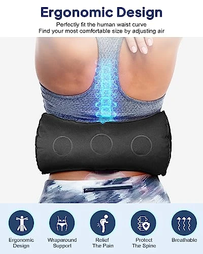 - Effective Lumbar Pain Relief: Our Perfect Fit Lumbar Pillow is expertly designed to provide relief for pain caused by spinal inflammation, herniated discs, or lumbar strains. Its inflatable lumbar support pillow axially stretches the muscles, disperses pressure, and improves blood circulation, leading to natural stretching and reducing lower back pain.