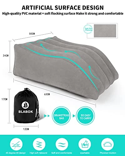 - Skin-Friendly and Safe Material: Our wedge pillow is made of PVC with a soft, non-sharp flocking surface that provides firm and comfortable support. The material is also skin-friendly, free of harmful chemicals, and has undergone a 24-hour leak proof test. Raise your feet above your heart level and feel the benefits of this comfortable and safe leg pillow.
