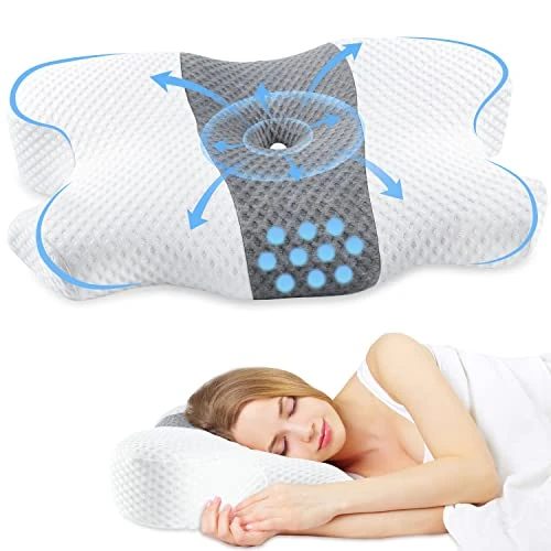 - β€γPromote High-Quality SleepγOur neck support pillow ensures you wake up feeling refreshed and enjoy high-quality sleep throughout the night. It is thoughtfully designed to support your neck and shoulders, conforming to the natural curve of your body and optimizing air passages to reduce snoring and promote a more restful sleep. The side cutouts provide a resting place for your top arm, keeping it at an angle that prevents shoulder hunching. As a result, you can wake up without any neck or shoulder pain.