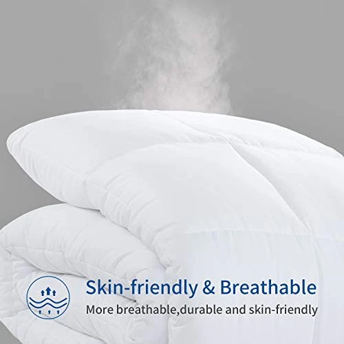 - 【Super Soft Fabric】:The down alternative comforter shell and duvet cover all made of high quality peach skin fabric.The fabric is very Soft ,Durable and conforms to your every position,hugged your body while feeling light as a feather.Soft & Noiselessly,if you are tired of the noise of the down comforter, this is your best down alternative comforter.