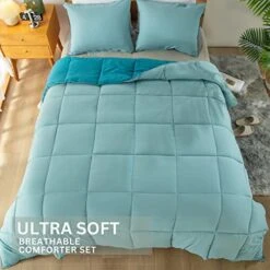 Bedding-Comforter-Set-Duvet-Insert, Soft, Lightweight,Breathable, Blue/Teal, All Season King