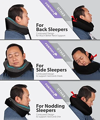 - [KEEPING YOU COOL] While typical travel pillows have poor ventilation, the Fosmon memory foam neck cushion incorporates mesh side panels to keep you cool without compromising support. Use comfortably while traveling on a stuffy plane, a cramped automobile, or even while laying down on your couch; it provides consistent support with no need for adjustment