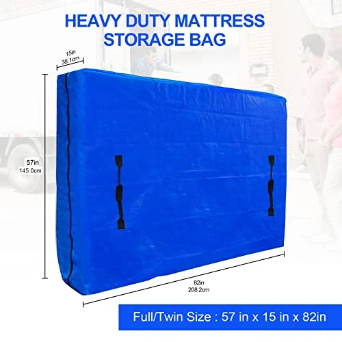 - 【REINFORCED HANDLES AND DURABLE ZIPPER】: Our mattress bags for moving was designed with 8 reinforced strong handles which helps to make carrying work easlily and safely.Durable double zippers and high quality double sewing provide a good protection for mattress or box spring against dirt,dust or damaged.It is a perfect choice to carrying & protection & long term storage mattress.