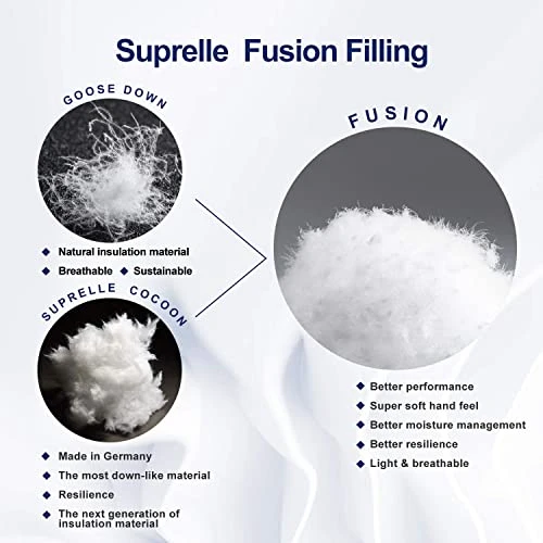 - CLOUND-LIKE SOFTNESS:filled with Suprelle Fusion white goose down comforter.Fluffy and odorless provides a comfortable night’s sleep