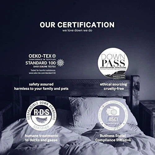 - SAFETY CERTIFIED: OEKO-TEX STANDARD 100 certified. DOWNPASS audited, we guarantee non living- plucking, non cage-rearing and force-feeding, all the down and feathers are sourced from food industry.