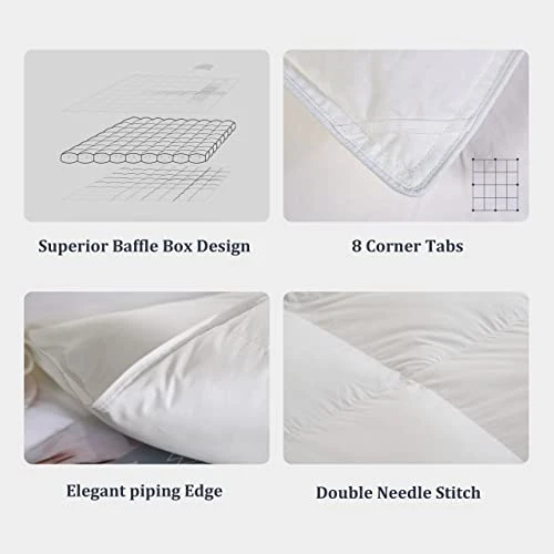 - 💛Luxurious Design:Baffle Box Stitching design makes the inner fillings evenly distributed and keeps the fills not shift or clump.Double Needle Stitch and Exquisite Piping Edges is made for extra durability and luxury look.8 Corner Tabs can easily attach the duvet cover.The comforter can be used as a duvet insert or a stand-alone comforter as you like.