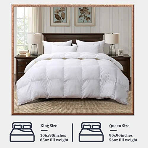 - 💛Premium Down and Feather:Our comforter is stuffed with high-quality 90% WATERFOWL DOWN&FEATHER FIBER ,5% WATERFOWL FEATHER and 5% GOOSE DOWN,it offers maximum warmth and fluffiness and better moisture absorption. Get a luxury sleeping experience with our ultra-soft,breathable and fluffy down comforter,wake up with energy in the morning.