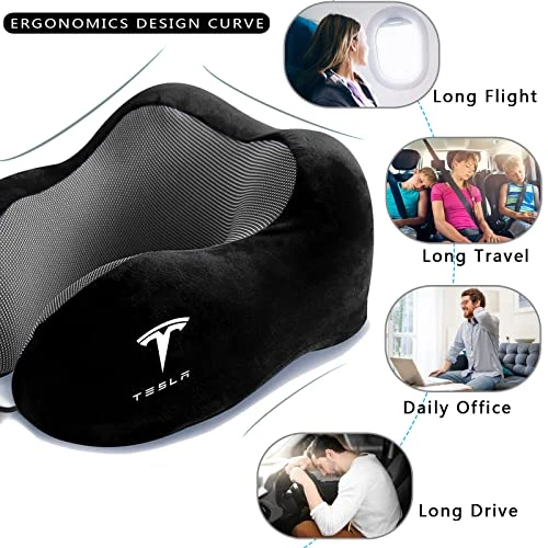 - 🗼【Ergonomic Design Support】: Multi-angle protection of the cervical spine. Travel neck pillow with memory foam can better fix your neck to provided support and comfort, prevents head from falling forward. Velvety exterior with cooling fine mesh interior provide the most relaxing travel experience. The pillowcase of TESLA Model y neck pillow features an easy to use zipper, easy to clean.