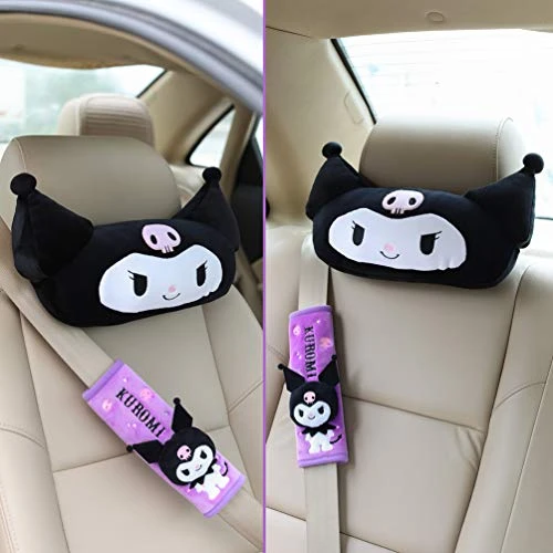 - 😻【Best Gifts】:Suitable for car anime lovers party decoration, best gift for friends, children, lovers, family, Kuromi lovers. Soft cute girl heart cartoon little devil rabbit car headrest car pillow neck pillow shoulder guard seat belt cover car accessories.