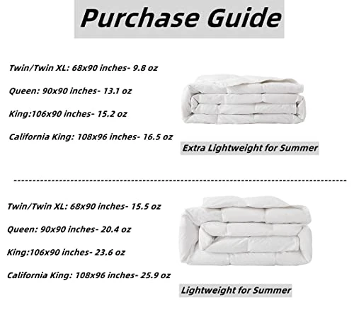 - SIZE- King: 106×90 inches, Fill weight: 23.6 oz. Perfect For Use On Air Conditioned Summer or Warm Weather, also can provide warmth for Hot Sleepers.
