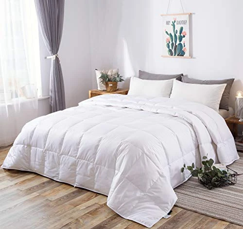 - PRACTICAL DESIGN- Small boxes design make the down equally distribute throughout the comforter, keeps the duvet fillings fluffy, reduce the cold spots. Durable hems of double stitched and precise stitches ensure the product durability. Eight corner tabs for easy attach duvet cover.