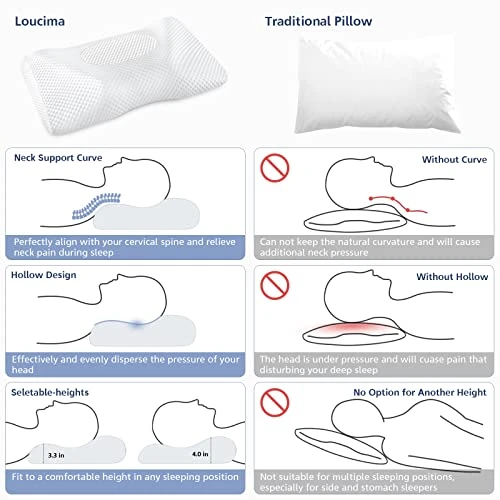 - 5-Year Guarantee and Lifetime Considerate Customer Service: Finding the right pillow is often a process of trial and error, however, your pillow search ends here with Loucima. We offer 100-night free trial for customers to correct cervical spine and build a habit of cervical maintaining. Loucima professional customer service team response any problem within 24-hour, providing hassle-free replacement or exchange process for any dissatifaction.