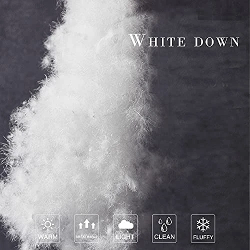 - HIGHEST QUALITY MATERIAL: 450 Fill Power cubic inch per OZ White down & feather fiber comforter, constructed using premium quality White down & feather fiber filling with 400TC per SQ IN brush poly-cotton microfiber, outer shell. This plush comforter is designed to keep you rested all throughout the night.