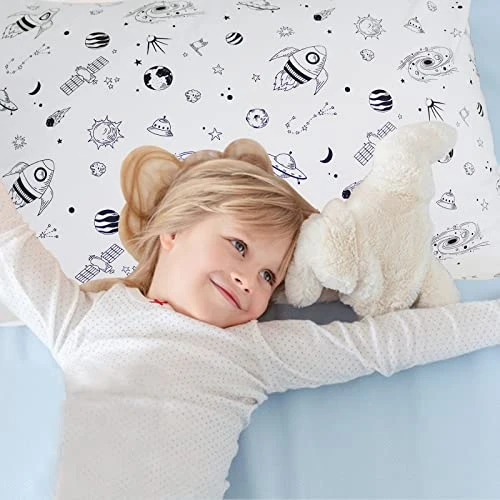 - CUTE DESIGN: This pillow cover adopt double-sided personalized universe space design, Lovely and stylish design with vibrant color, adds fun and vitality to the toddler bed set. Also Kids will love cuddling up and camping out with the pillowcase.