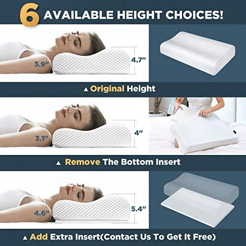 - ADJUSTABLE = MORE HEIGHT CHOICE! Unique wave shape design provides two different thicknesses, simply rotate the bed pillow 180 degrees to enjoy a higher or lower contour! More Refined is that this sandwich pillow has a removable insert at the bottom of the pillow, which allows you to further lower the loft. If you still have a higher need, simply contact us for an extra insert without any cost. Whether you are used to side sleeping, stomach or back sleeping, Osteo will hit your sweet spot!