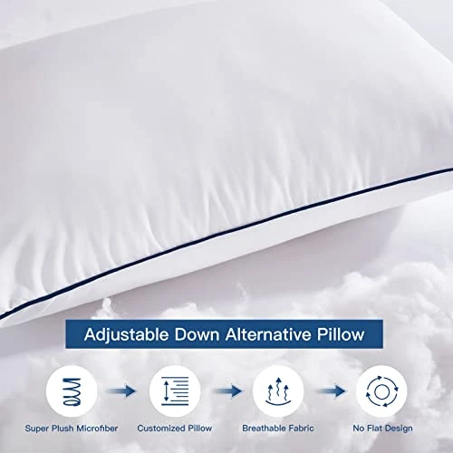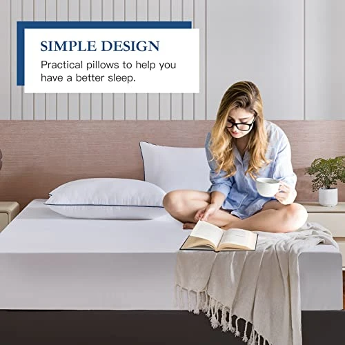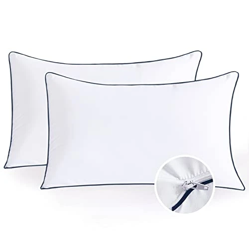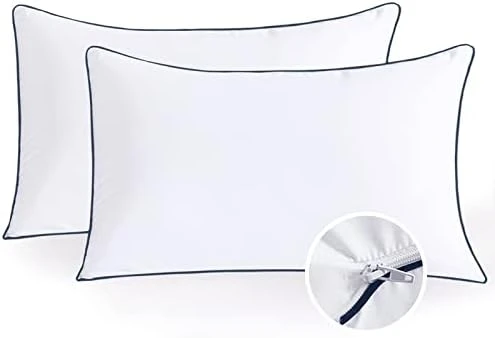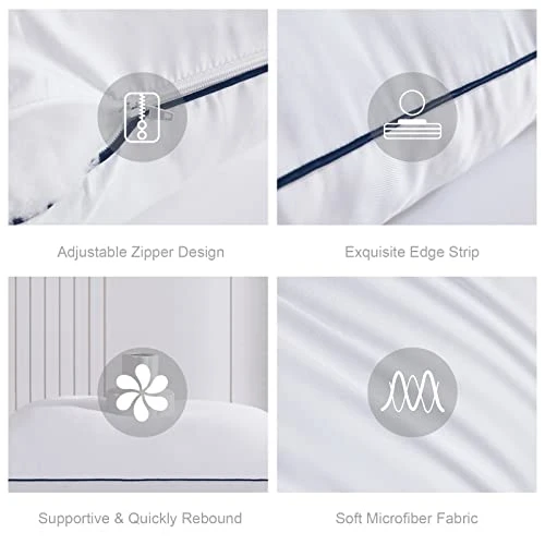 - Soft and Supportive Hotel Pillows:King size pillows appearance design is simple yet sophisticated, solid color brushed micorfiber fabric with blue piping strip, plus zipper design. The high-quality filling provides lasting support and prevents flattening, making it a true hotel-quality pillow.