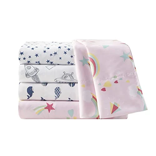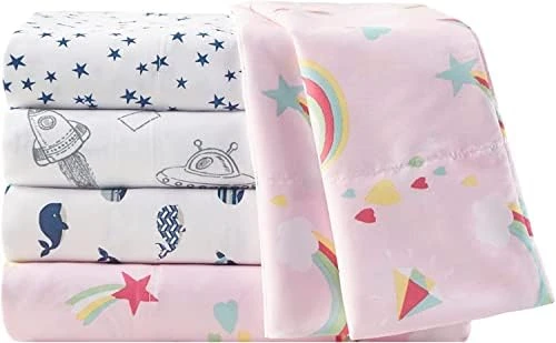 - Novelty print Ultra soft microfiber Naturally wrinkle free Set includes 1 fitted sheet, 1 flat sheet, and 1 pillowcase Fitted sheet fits mattresses up to 14″