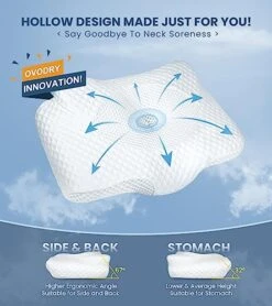 OVODRY Adjustable Cervical Pillow Naturally Restore Neck Health, Hollow Memory Foam Pillows For Pain Relief Sleeping, Odorless Orthopedic Contour Pillow, Bed Pillow Support Side Back Stomach Sleepers