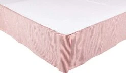 Farmhouse Ticking Stripe Red King Bed Skirt 78″ X80″, W/ 16″ Drop, Tailored Dust Ruffle