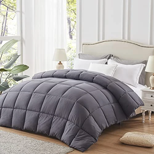 - 【Box Stitching & Corner Tabs】The box stitching design ensures filling evenly and prevents any leaking, shifting and clumping, thus keeping comfortable all night. The 8 durable corner tabs are convenient for keeping in place inside the duvet cover, never slide around. Can be used as a comforter alone or as a duvet insert to match your favorite duvet cover.