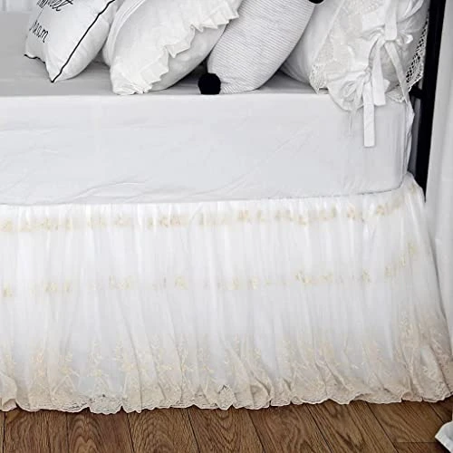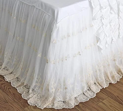 - Customized option: Queen size lace bed skirt split corners 21 inch drop
