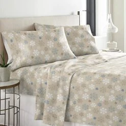 Flannel Sheet Set Cotton Soft Warm & Cozy Modern Chic With Elastic Deep Pockets, Twin, Deer Ivory
