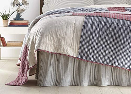 - AMERICANA DECOR: The Hatteras Bed Skirt takes on a delightful Americana feel featuring popular seersucker ticking stripes in denim blue and cotton white. This vintage dust ruffle creates a lovely base for all your country, farmhouse decor with premium quality for years of enjoyment.