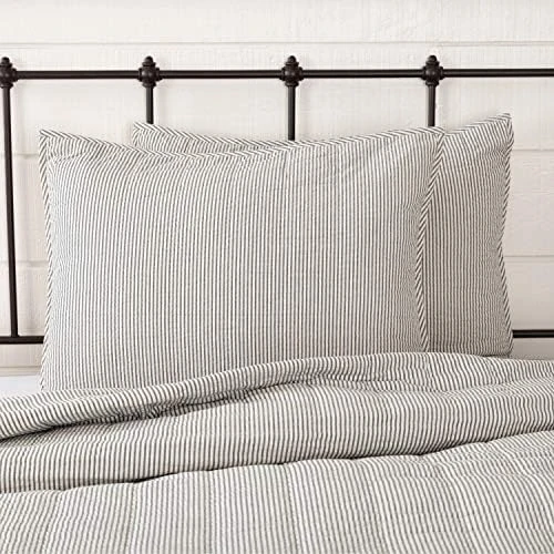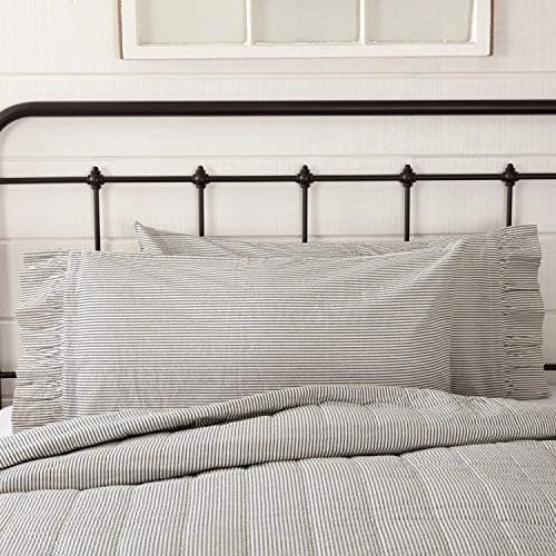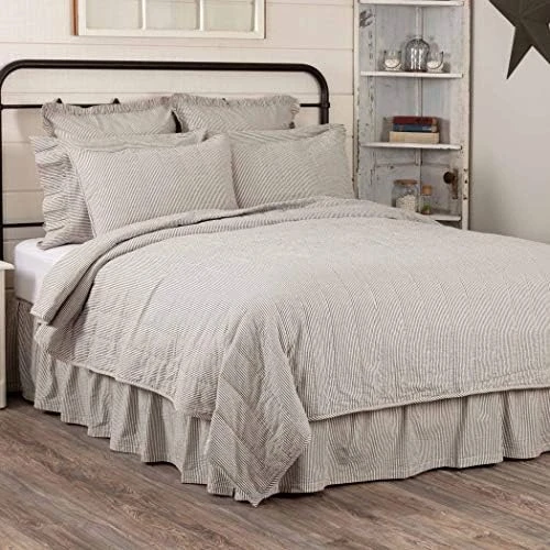 - QUALITY MATERIAL PAIRED WITH VINTAGE FARMHOUSE STYLE: Made with a durable 100% cotton materials for a proper look and feel, the vintage country style of our seersucker bed skirt compliments any farmhouse or Americana home.