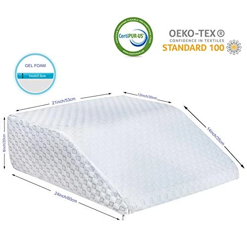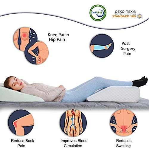 - Gel Topper Infused Memory Foam Pillow: The WAJ leg pillow topper is made of cooling gel memory foam and it is easier to rapid rebound during 3-5 seconds. The leg elevation wedge bottom is designed for the best quality high density foam to make it keep shape even after many hours of use.