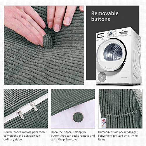 - Removable Pillowcase:The decorative buttons and pillow core are firmly sewn together, you need to push the button through the eyelet first, then open the bottom zipper to remove the pillow core, then you can replace and wash the pillowcase. 2 Side pockets are convenient and practical,can be placed little things you need.